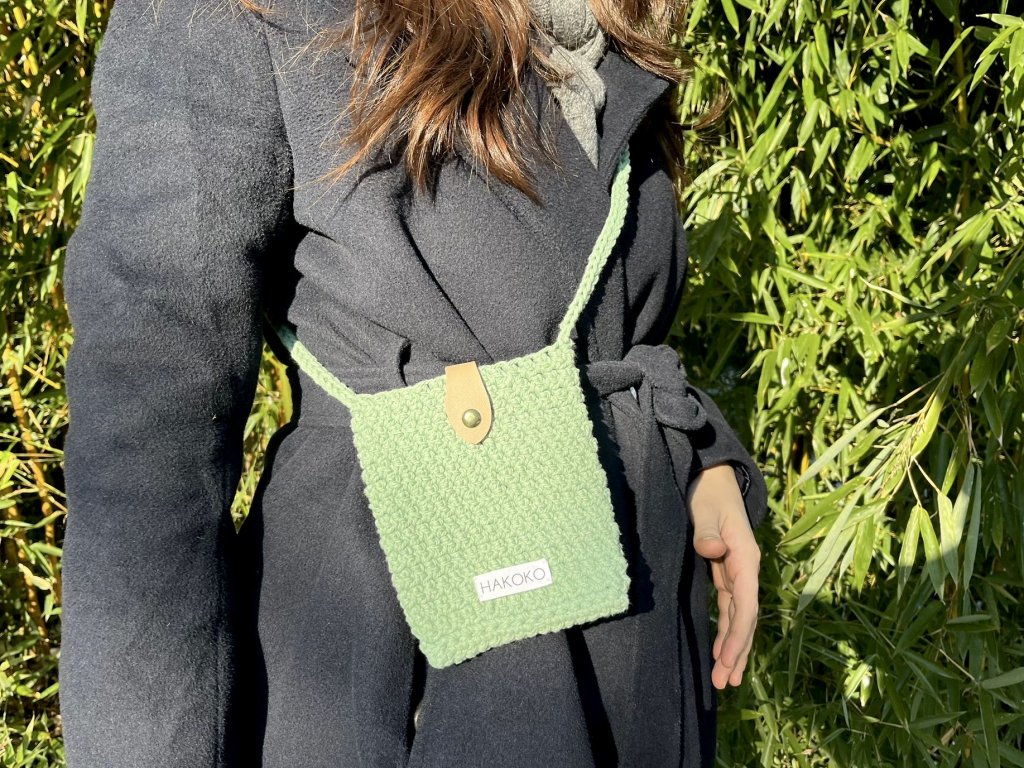 Háčkované pouzdro z kvalitní bavlněné příze, která dobře drží tvar, ale zároveň je poddajná.